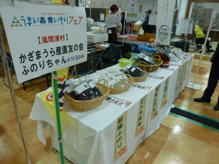 風間浦村からは、産直施設「ふのりちゃん」、「風間浦村水産物開発販売振興協議会」が参加し、ふのり・岩のり・だし昆布などを販売しました。